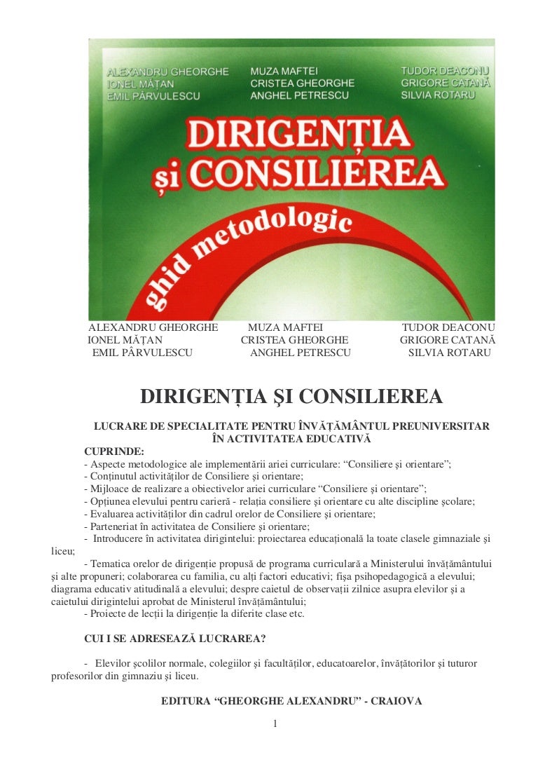 vizita?i articolul complet aici : https://www.slideshare.net/informaticasalcuta/dirigentia-siconsiliereacartea168pagini Elemente de conţinut materialele necesare susţinerii orelor de consiliere şi orientare respectă o schimbare, creştere, dezvoltare. Currently eastern european time (eet), utc +2. In aceasta clasa am avut cele mai frumoase momente.