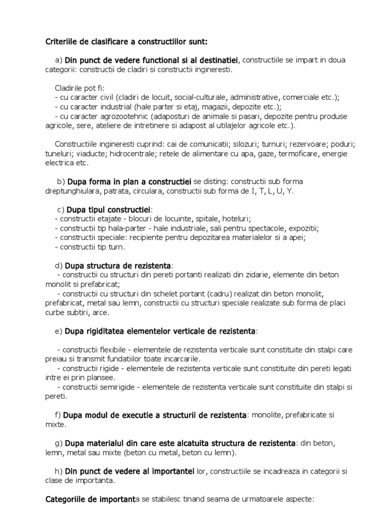 Clădiri de locuinţe cu mai mult de două niveluri, construcţii industriale şi agrozootehnice curente, clădiri cu. Constructii cu functiuni obisnuite,a caror neindeplinire afecteaza un numar redus de oameni(cladiri de locuinte parter sau parter si etaj,dependinte gospodaresti,constructii provizorii). Construcii de importan excepional a construcii cu funciuni deosebit de importante, a.
