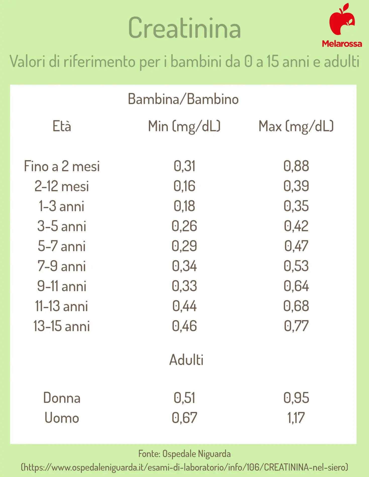 Quali sono i valori normali della creatinina? La creatinina è un parametro facilmente valutabile, sia per l'ampia diffusione e il basso costo, sia grazie al fatto che è possibile analizzarla a partire da diversi campioni biologici: Questo può essere dovuto a qualsiasi malattia in grado di colpire i due organi.