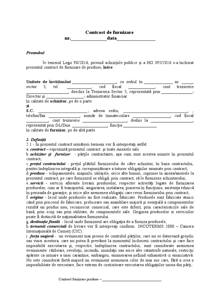 Model contract de furnizare,formular contract de furnizare download gratuit pdf word doc. Ai avut un contract de furnizare încheiat cu electrica furnizare, ai optat pentru o ofertă de la un alt furnizor de energie electrică și dorești să revii la electrica furnizare. Au convenit sa incheie prezentul contract de furnizare marfa, cu respectarea urmatoarelor clauze: