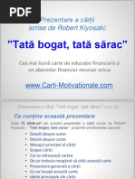 Tata bogat tata sarac este povestea lui robert kiyosaki, care prins între mentalitățile a 2 tați total opuși ca și abordare a laturii financiare, a fost nevoit să se decidă pe care îl urmează ca model în viață.